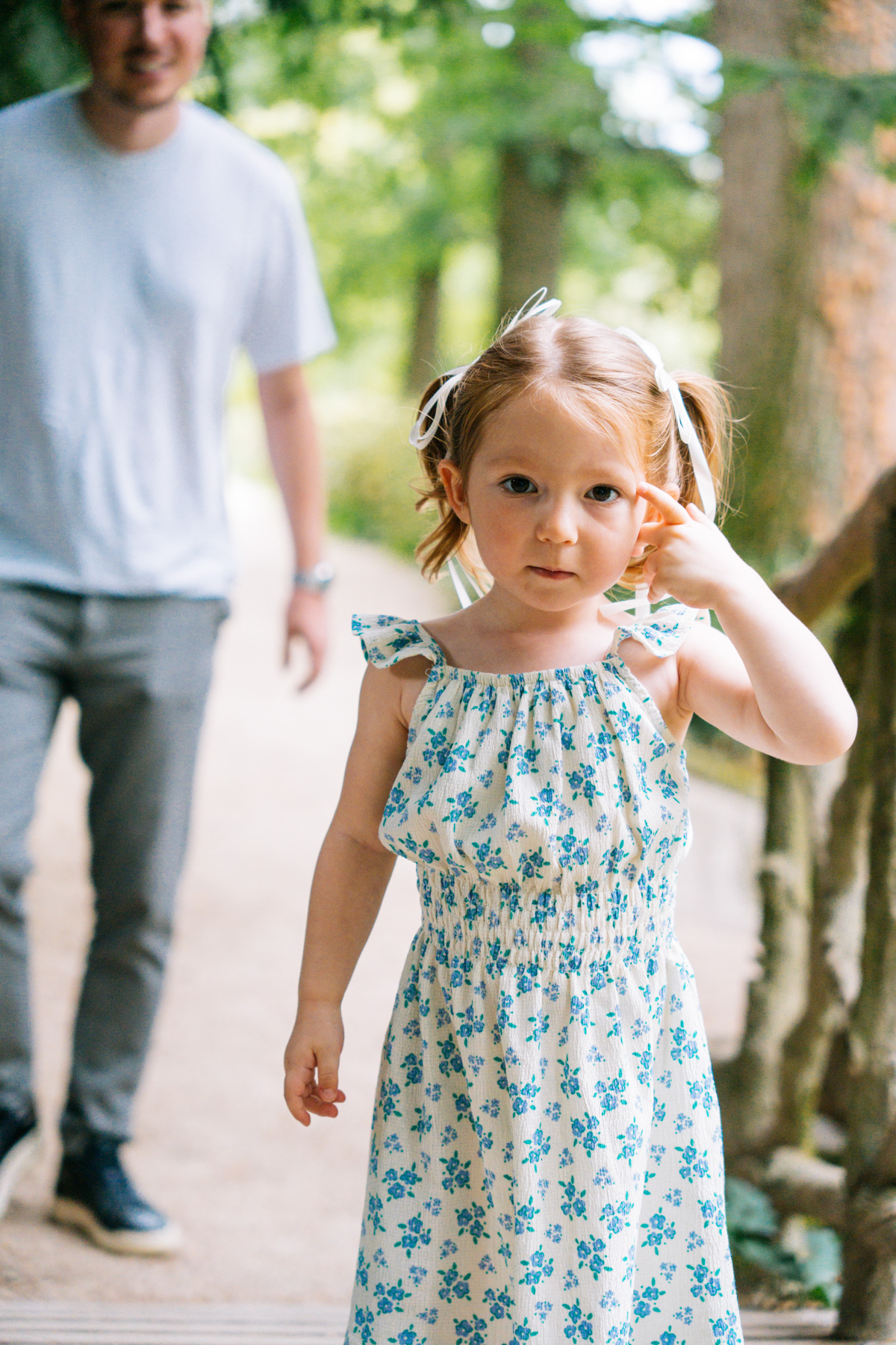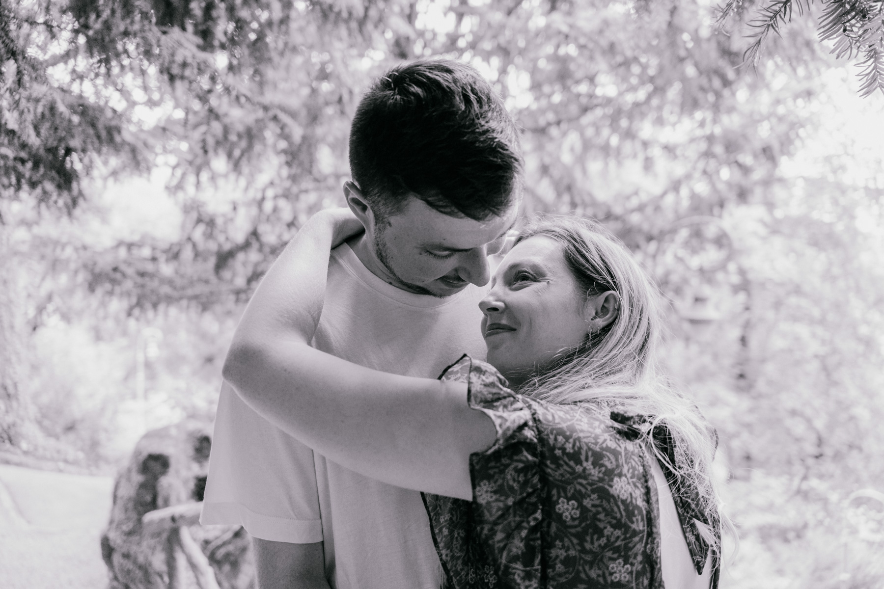 Durant 1h30, nous avons parcouru la quasi totalité du parc, avec des arrêts sur les nombreux spots du parc du Thabor. Ils offrent chacun une ambiance différente : les grandes allées arborées, les coins plus intimistes du jardin, ou encore les espaces ouverts où la lumière passe à travers les arbres. Le Parc du Thabor est parfait pour ce type de séance, car il permet de varier facilement les décors tout en gardant une atmosphère douce et naturelle.